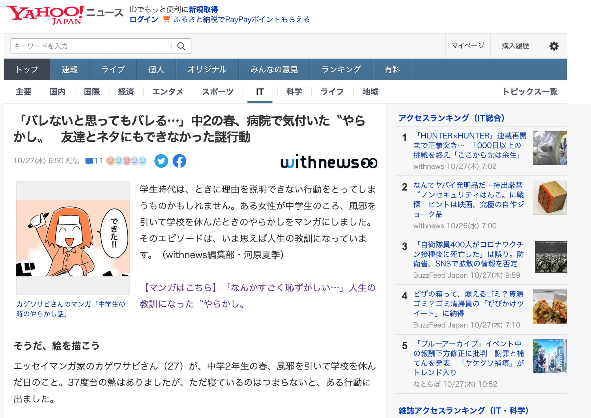 エッセイ「中学生の時のやらかし話」withnewsコラボ企画大賞受賞